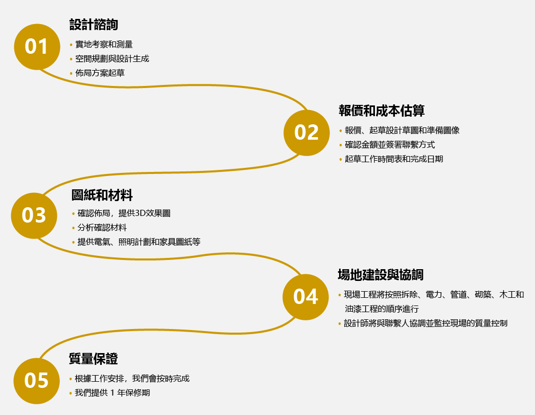 - 裝修顧問會協助您提出任何調整報價單的要求;當您滿意報價,便可安排簽約